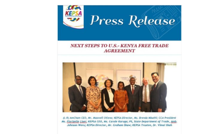 KEPSA and CCA signed an MoU to promote mutual interests through cooperation in the promotion of trade and investment opportunities in Kenya. This emphasizes on the need to explore opportunities between Kenya and the USA on the backdrop of the commencement of the negotiations on the free trade agreement between Kenya and USA.