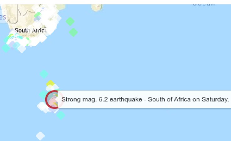 The second quake occurred at about 1,922 km southeast of Cape Town in the southwestern Indian Ocean, at the "active divergent plate boundary separating the African and Antarctic plates, which probably now have moved a few cm further apart as a consequence".