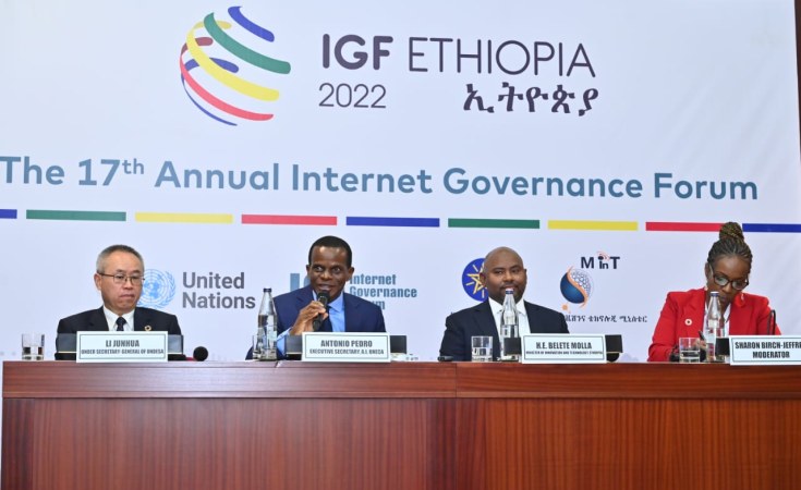 Opening Press Conference Antonio Pedro, Acting Executive Secretary of the UN Economic Commission for Africa, Li Junhua, Under-Secretary-General for Economic and Social Affairs together with Belete Molla, the Minister of Innovation and Technology of Ethiopia briefed the journalists today on the priority issues at this year’s Internet Governance Forum. Questions focused on internet fragmentation as well as the UN's ongoing efforts to advance meaningful connectivity in Africa.