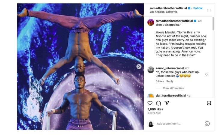 The Ramadhani Brothers are known for their incredible head-balancing act. In their qualifying performance, they balanced each other on their heads while walking up and down stairs and even blindfolded. Their performance was met with a standing ovation from the judges and audience alike.