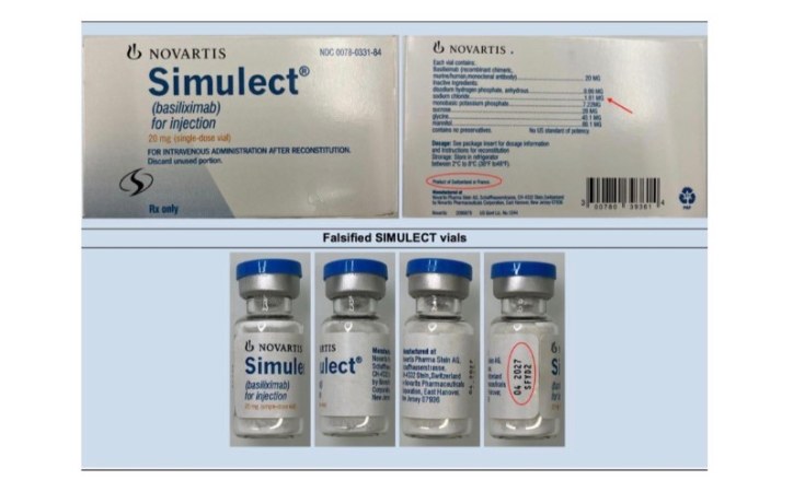 According to the regulator, the falsified product displays several discrepancies when compared to authentic SIMULECT packaging.