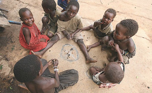 Children play outside at an internally displaced persons camp in Arare, southern Somalia.
