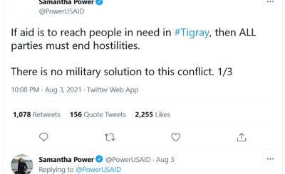 USAID administrator Samantha Power finalized a day-long trip to Ethiopia without an audience with Prime Minister Abiy Ahmed. She however used her short visit to reiterate her… Read more »