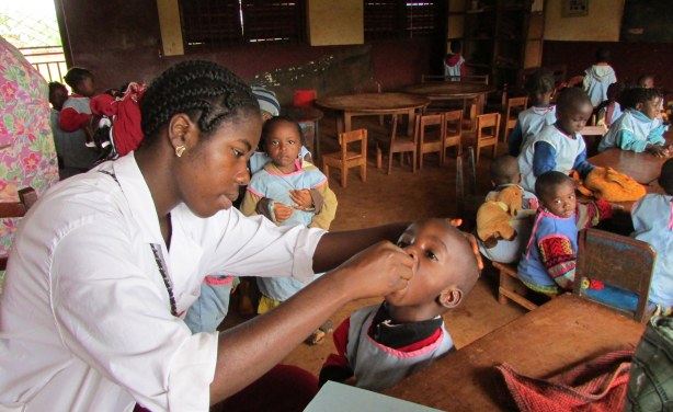 Vaccination team helping children at a nursery school (file photo).
